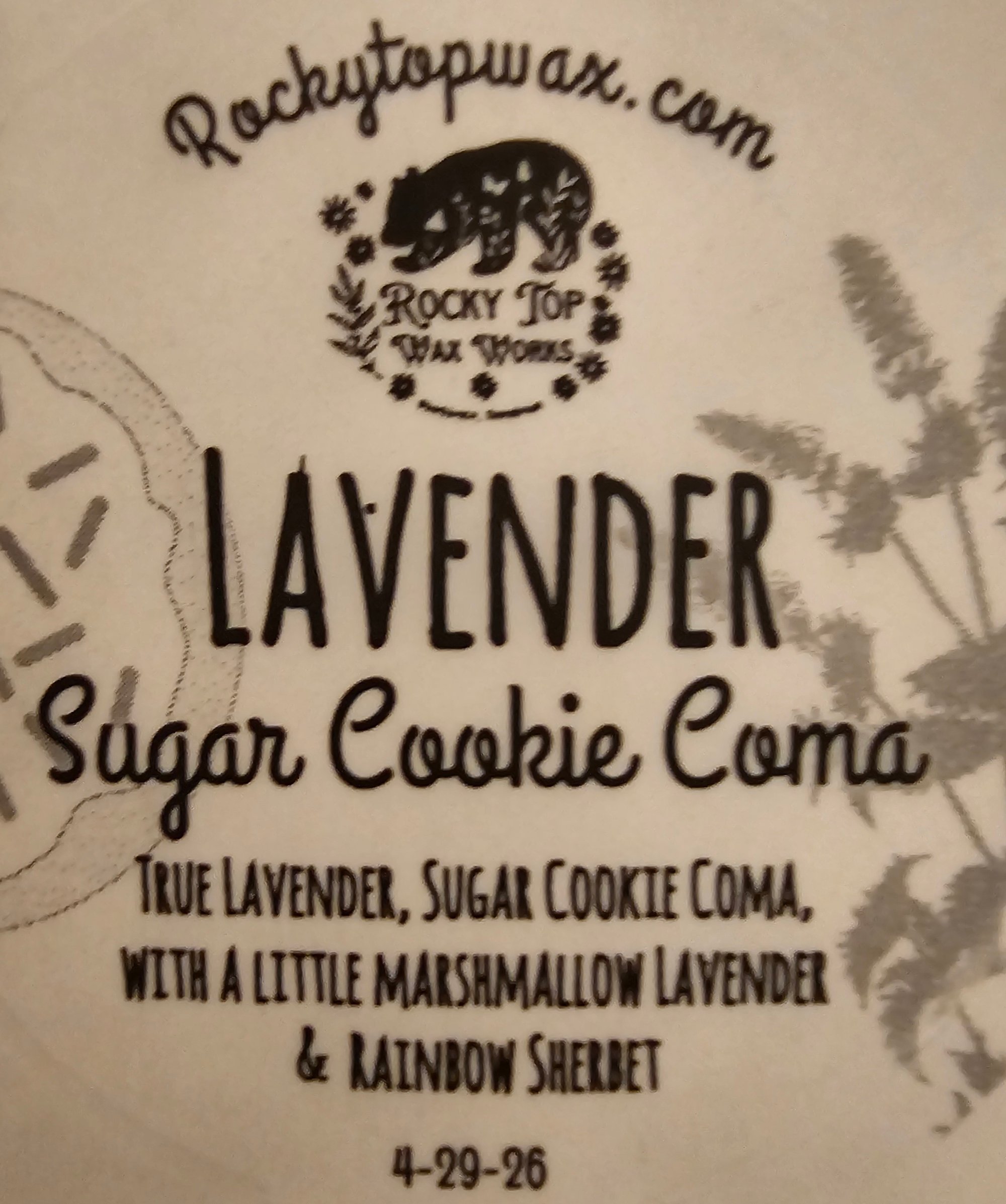 Lavender Sugar Cookie Coma-a Rocky Top Wax Works exclusive custom houseblend fragrance