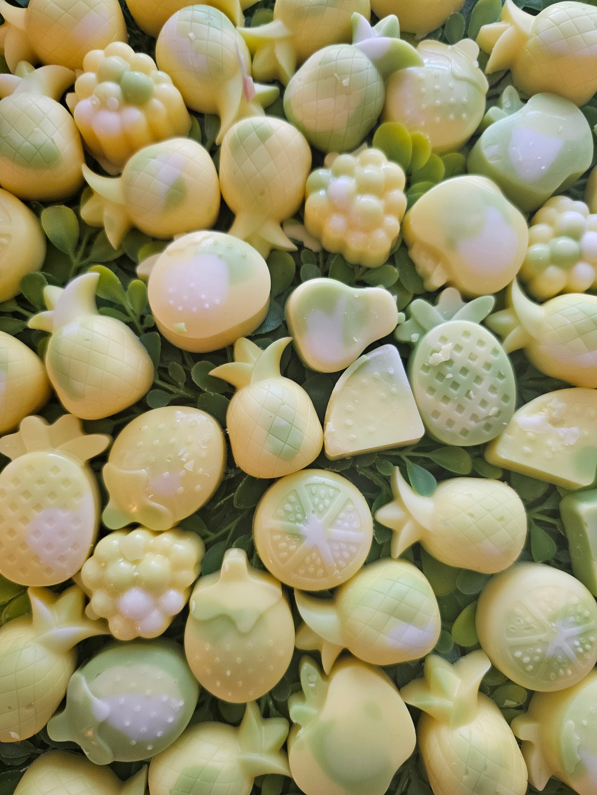 Monkey Toots (aka farts) which is banana forward, strawberry, citrus, coconut. Pineapple, vanilla and musk with buttercream crunch cake which is Buttery, Cream, Cinnamon, Maple Sugar, Vanilla, Musk and a little bit of frosted cupcake. A Rocky Top Wax Works exclusive custom houseblend fragrance