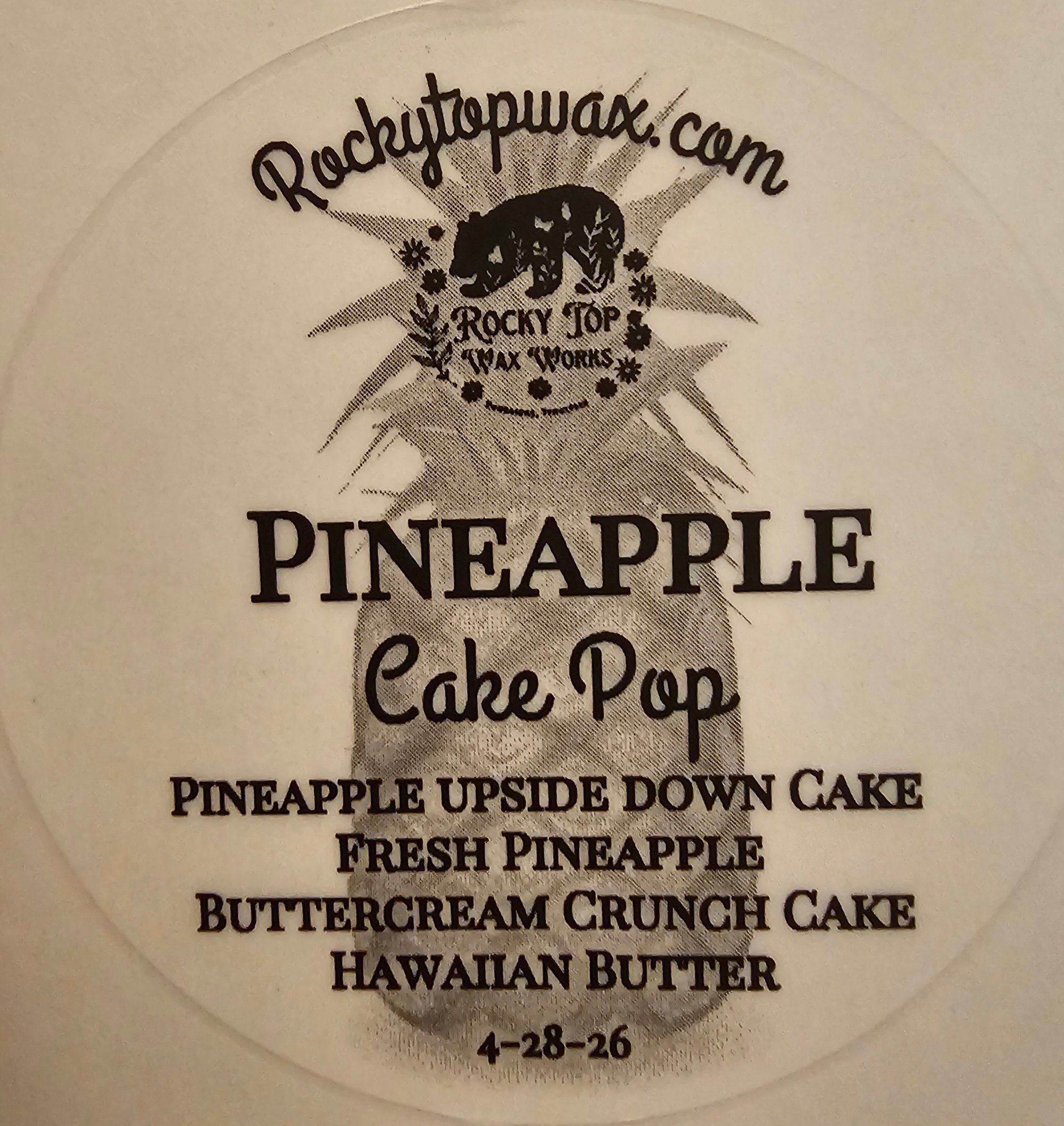 Pineapple Cake Pop-A Rocky Top Wax Works exclusive custom houseblend fragrance