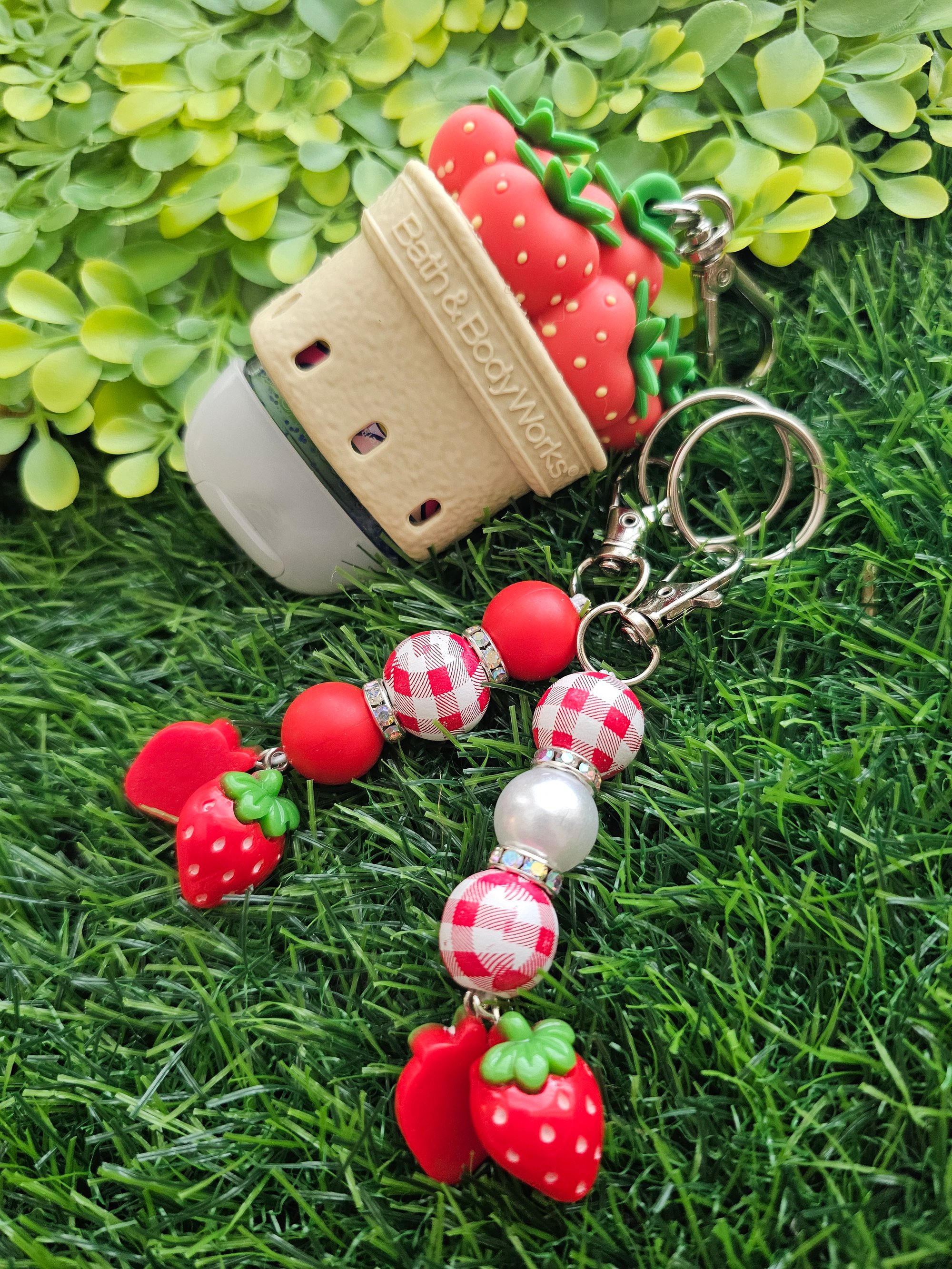 Handmade purse charm/keychain ..matches nicely with beaded pens and new Bath and Body strawberry basket pocket bac holder** not included